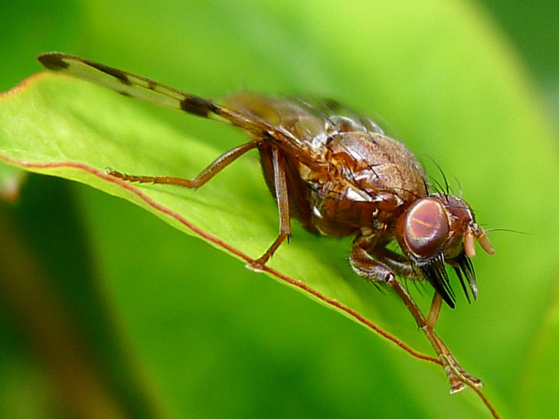 Die Familie der Tephritidae, auch Frucht oder Bohrfliegen genannt, gehört innerhalb der Ordnung der Diptera (Fliegen und Mücken) zur Unterordnung der Brachycera (Fliegen). Weltweit existieren ca. 4 200 Arten. Es handelt sich bei ihnen um kleine Fliegen mit auffällig gezeichneten Flügeln, die häufig im Obstbau dadurch schädlich werden, dass die Weibchen mit einer Legeröhre ihre Eier in Früchten ablegen.